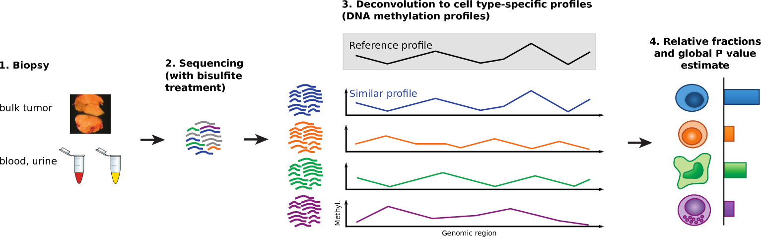 Figure: Deconvolution of the DNA methylation signal from blood DNA sequenced using Bisulfite-seq.