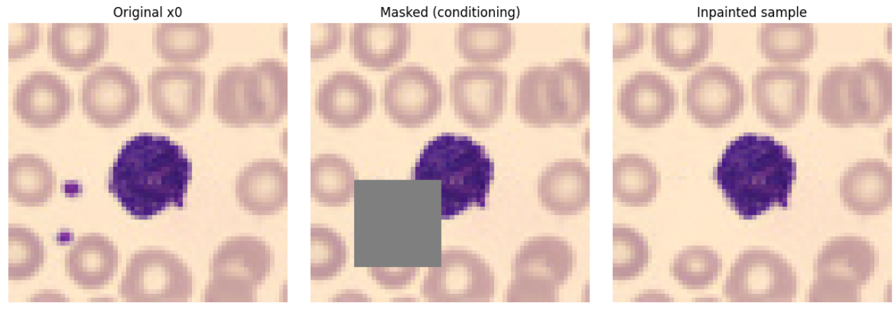 The aim of this project was to explore the ability of diffusion models to generate missing regions in images. It restores corrupted areas in H&E cell images using a compact diffusion model and a simple Streamlit UI.